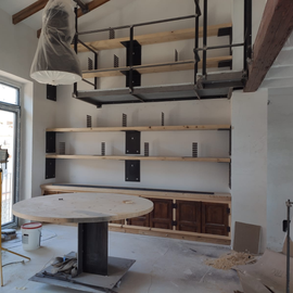 Proceso de fabricación de mobiliario de diseño, tales como estanterías y mesa de centro, a juego con